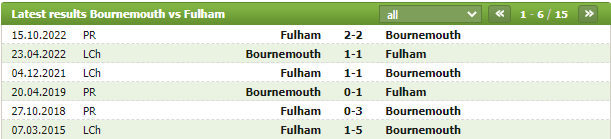 Lịch sử thi đấu của Bournemouth vs Fulham