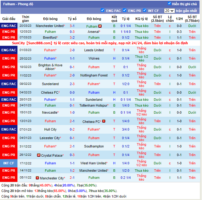 -Phong độ Fulham