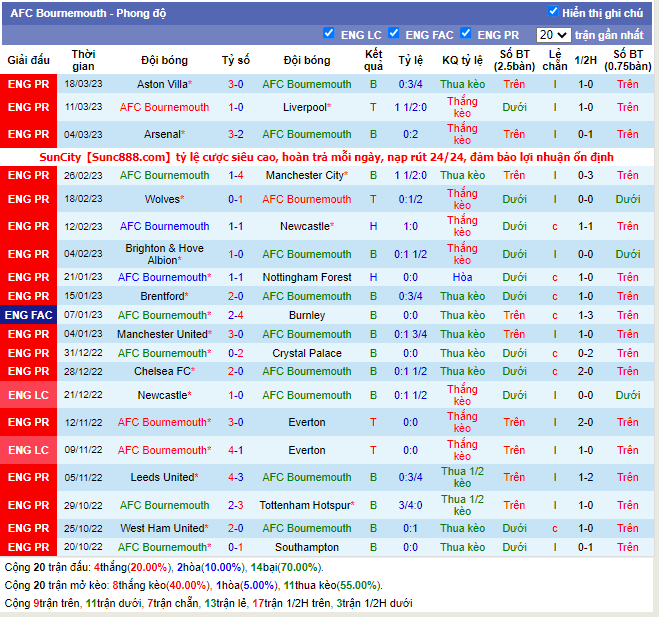 -Phong độ Bournemouth
