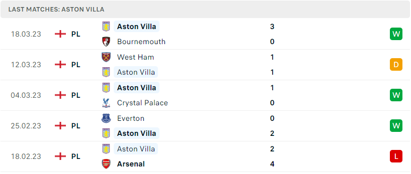 Phong độ của Aston Villa