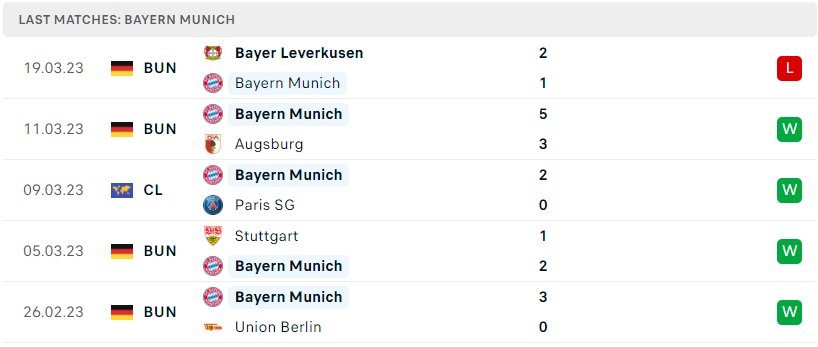 Phong độ của Bayern Munich