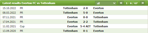 Lịch sử thi đấu của Everton vs Tottenham