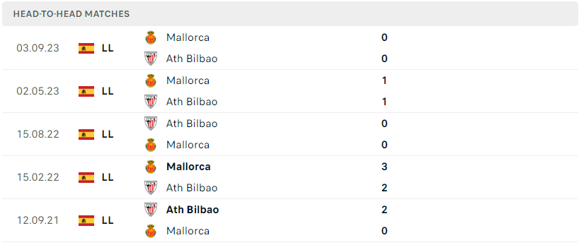 Thành tích đối đầu của Ath Bilbao vs Mallorca