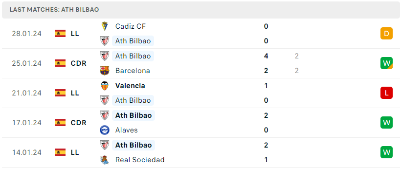 Trận hòa trong chuyến hành quân đến Cadiz ở vòng đấu gần nhất có lẽ đã phần nào làm gián đoạn mục tiêu trở lại top 4 của Ath Bilbao. Dù vậy, nhưng cơ hội vẫn còn rất nhiều phía trước và đoàn quân Valverde hoàn toàn có thể thực hiện được mục tiêu của mình nếu làm tốt trong phần còn lại. Màn tiếp đón Mallorca vào cuối tuần sẽ là một hội cực tốt để Bilbao tiếp tục cải thiện phong độ và điểm số.