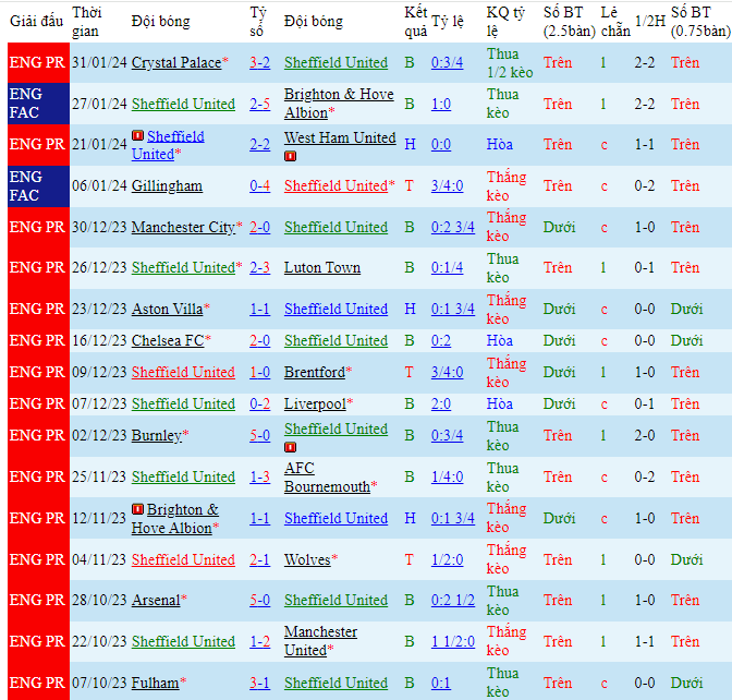 -Phong độ Sheffield United