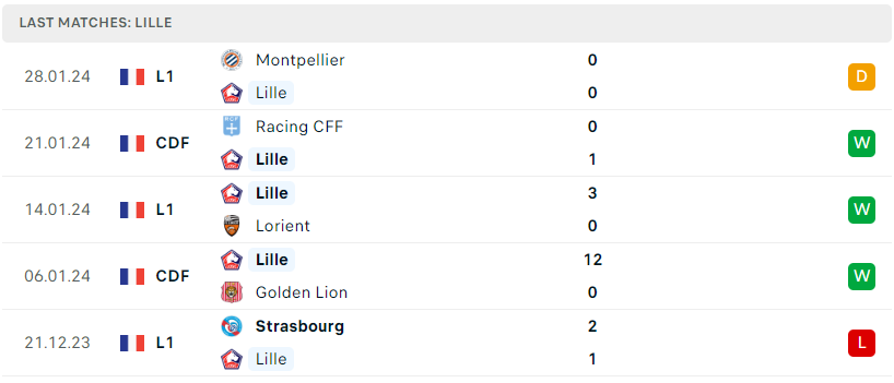 - Lyon 0 – 1 Lille FT