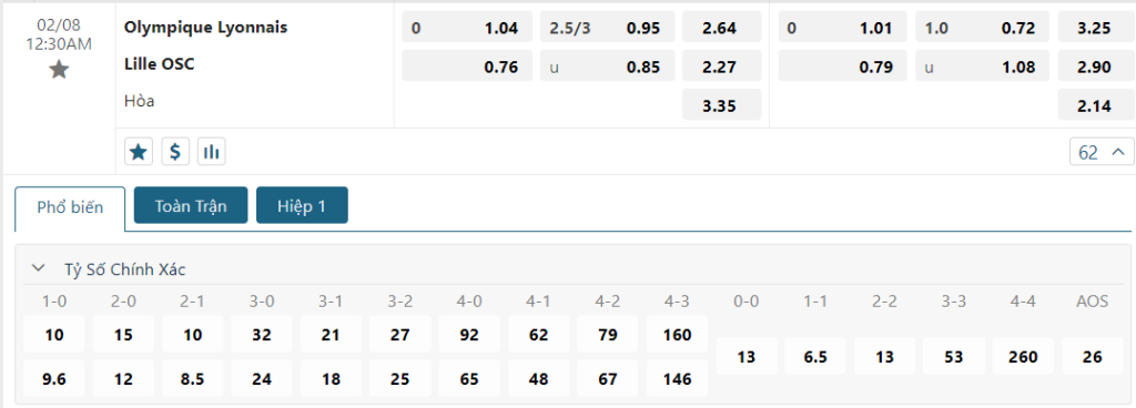 Soi kèo tỉ số Lyon vs Lille