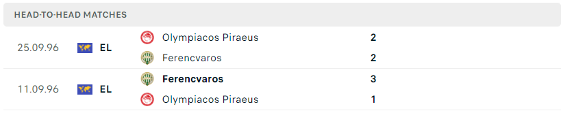 Mặc dù trong cặp đấu giành vé vào vòng bảng Champions League mùa giải 1995/96 thì Ferencvaros đã xuất sắc vượt qua Olympiakos sau 2 lượt đấu nhưng kịch bản này sẽ không còn dễ dàng như vậy ở lần tái đấu tại vòng 1/8 này. Chưa kể, đại diện đến từ Hy Lạp cũng đã tiến bộ hơn rất nhiều so với những năm về trước. Lợi thế sân nhà cùng với sự quyết tâm và sự trở lại sẽ giúp binh đoàn áo đỏ ngăn lại sự thăng hoa của đối thủ.