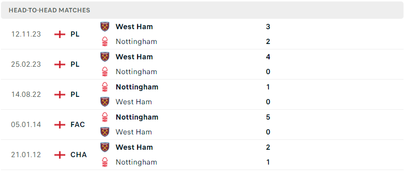 Sự lấn lướt vẫn đang tiếp tục được West Ham thể hiện qua thành tích đối đầu, khi họ đã thắng 3/5 lần đụng độ gần nhất. Một giai đoạn đặc biệt khó khăn nhưng đi kèm với đó cũng chính là khát khao trở lại của Búa Tạ. Vậy nên, dù phải làm khách và đang chịu nhiều thua thiệt nhưng với bản lĩnh của nhà ĐKVĐ cup C3 thì họ vẫn sẽ biết cách hóa giải Nottingham và thuận lợi giành điểm.