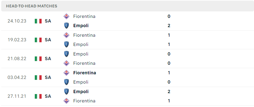 Trong khi đó với Fiorentina, binh đoàn áo tím lại đang trình diễn một phong độ cực kỳ bạc nhược khi đã thua đến 5/7 vòng đấu gần nhất. Sau khoảng thời gian thi đấu cực kỳ vào form thì đoàn quân Vincenzo Italiano lại đang lộ ra nhiều vấn đề cả về nhân sự lẫn lối chơi. Hiện Viola đã bị đá văng ra khỏi top 6 và chuyến hành quân đến Empoli sắp tới đây vẫn sẽ được dự báo là một nhiệm vụ không hề dễ dàng dành cho họ.