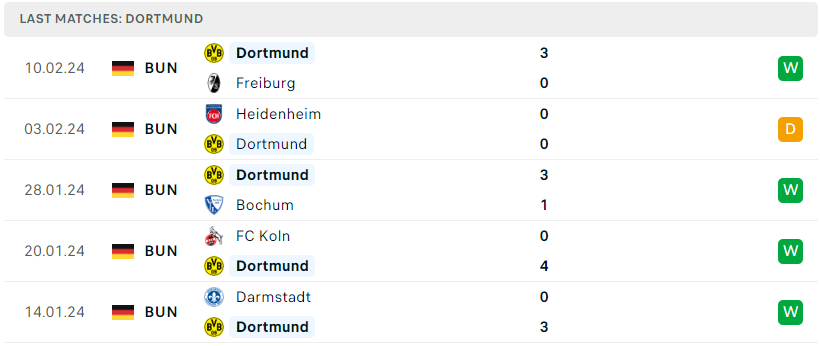 Phong độ của Dortmund