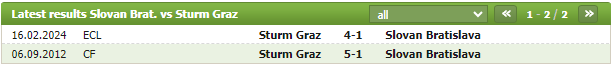 Lịch sử thi đấu của Slovan Bratislava vs Sturm Graz