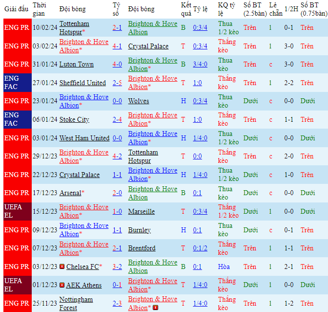 -Phong độ Brighton
