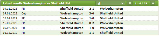 Lịch sử thi đấu của Wolves vs Sheffield United