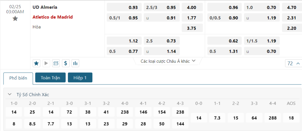 Soi kèo tỉ số Almeria vs Atl. Madrid