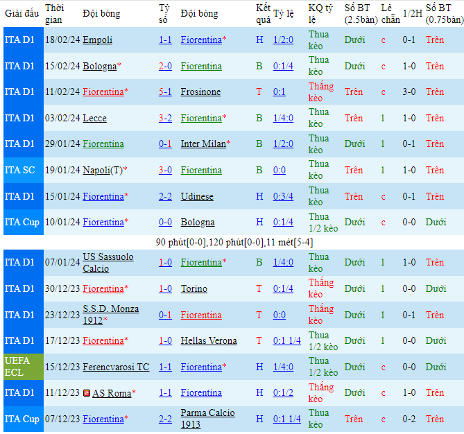 Kèo châu Âu cũng đang là sự ưu thế nhỏ cho đội chủ nhà khi mức ăn của Fiorentina đang là 2.31 trong khi đó con số này của Lazio đã là 3.00. Rõ ràng việc đối thủ đang chưa thể tìm thấy những vấn đề đang tồn đọng trong lối chơi sẽ là một cơ hội tốt để Lazio có thể khai thác hòng mở ra những cơ hội để tạo nên những bất ngờ nhất định. Một thế trận có sự chuẩn bị tốt trên mọi phương diện và cơ hội để có một kết quả khả quan vẫn là rất sáng của đối với đoàn quân thủ đô trước Fiorentina.