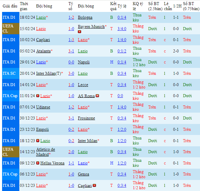 - Chọn Lazio +0.25 HT (kèo phụ)