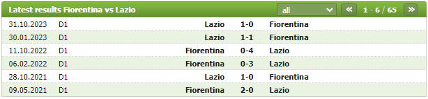 Lịch sử thi đấu của Fiorentina vs Lazio