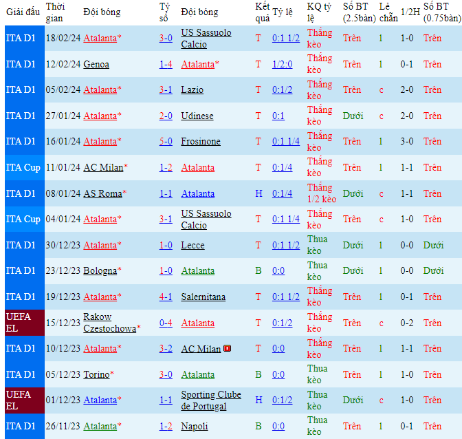 Trong khi đó với Atalanta, đây cũng là một thời điểm mà đội bóng này trở lại với phiên bản có thể xem là tốt nhất của mình. Họ vừa đánh dấu chiến thắng thứ 5 liên tiếp tại Serie A sau khi vượt qua Sassuolo với tỉ số 3-0 đầy dễ dàng. Binh đoàn đến từ Bergamo đặt quyết tâm rất cao để góp mặt trong top 4 khi mà với 45 điểm có được, họ đang kém mục tiêu đề ra đúng 3 điểm, tuy nhiên lại đã thi đấu ít hơn đến 2 lượt. Rõ ràng Atalanta có thể là mối đe dọa không hề nhỏ dành cho Inter Milan ở vòng đấu tới đây. Màn so tài sẽ là sự lấn lướt của đội chủ nhà và khả năng nổ tài cũng là rất khả thi.