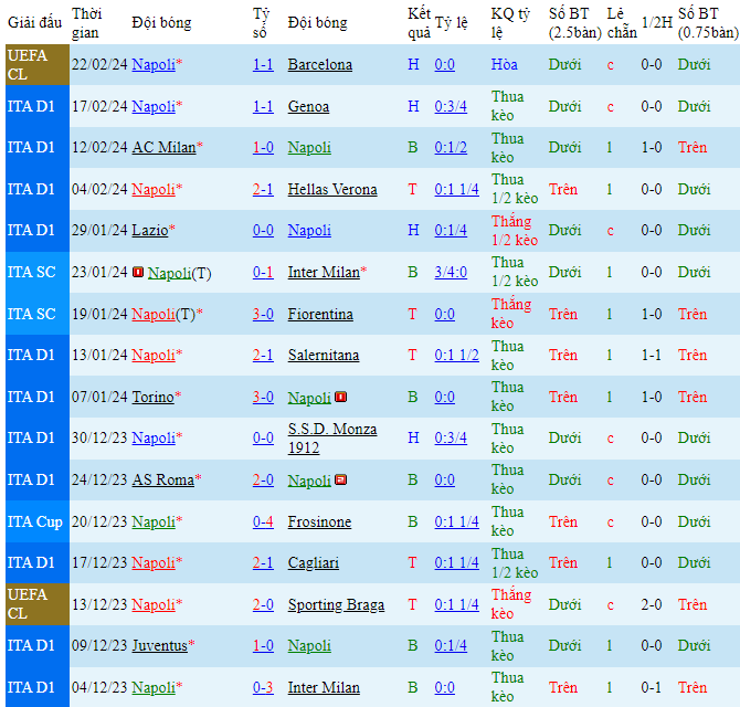 - Chọn Napoli -0.25 HT