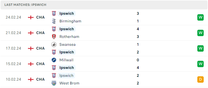 Phong độ của Ipswich