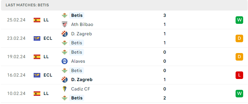 Phong độ của Betis