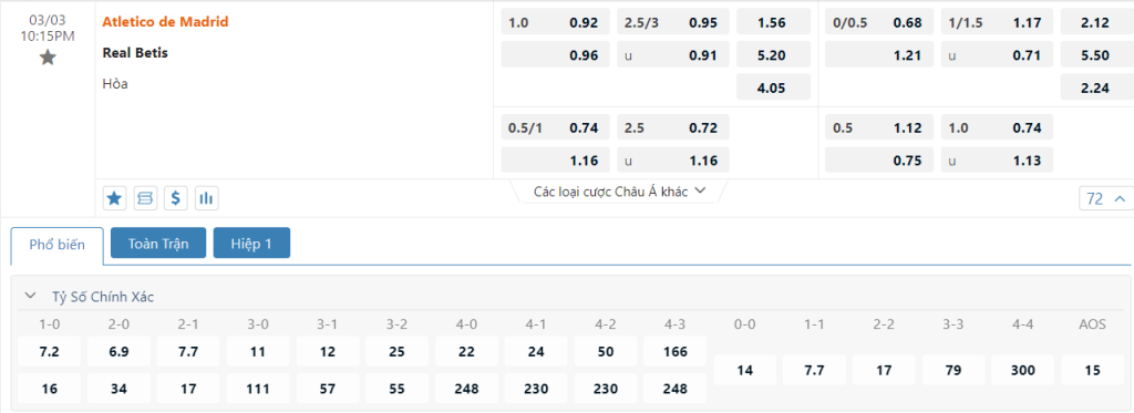 Soi kèo Châu Á, kèo chấp Atl. Madrid vs Betis