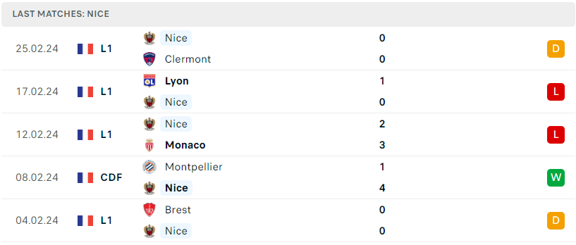 Trong khi đó với Nice, đoàn quân Francesco Farioli lại đang trải qua một giai đoạn đặc biệt khó khăn, trận hòa bạc nhược trước Clermont ở vòng đấu trước đã là trận thứ 3 liên tiếp mà Đại Bàng không nếm mùi chiến thắng. Đáng ngại hơn, Nice cũng đã bị đẩy xuống vị trí thứ 3 trên BXH và hiện kém vị trí thứ 2 quen thuộc 3 điểm. Với phong độ như hiện tại thì chuyến hành quân đến Toulouse sắp tới sẽ tiếp tục được dự báo là một nhiệm vụ không dễ dành cho họ.