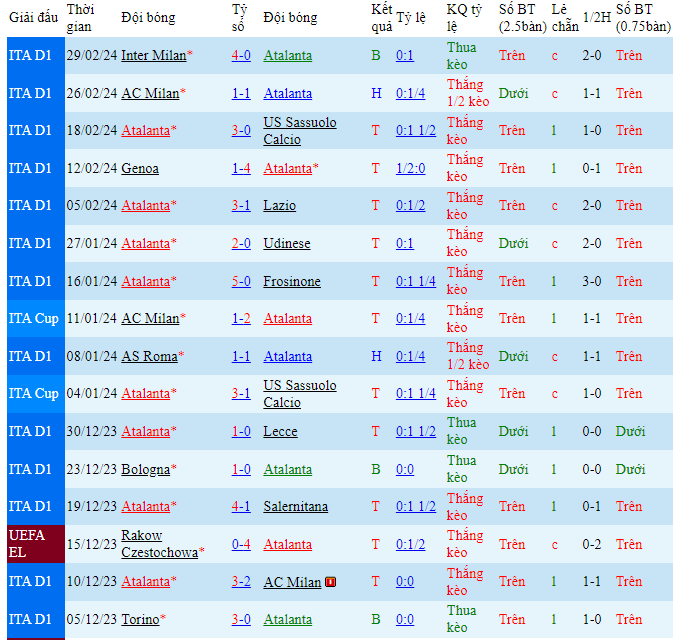Với việc phải nhận thất bại với tỉ số 0-4 trước đội bóng đầu bảng Inter Milan ở vòng đấu vừa rồi, Atalanta đã không thể tiếp tục duy trì được chuỗi trận thăng hoa của mình. Ngoài ra đó cũng là sự tai hại khi mà họ đã chính thức đánh mất lợi thế trong khu vực top 4. Trận đấu tiếp theo rõ ràng sẽ là một kèo đấu rất quan trọng đối với binh đoàn áo sọc xanh đen khi mà họ sẽ phải đụng độ với đối thủ cạnh tranh trực tiếp với mình là Bologna.