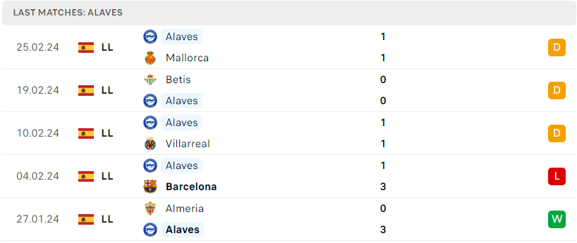 Phong độ của Alaves