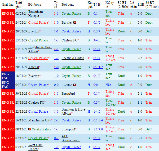 Rõ ràng với thất bại trước Tottenham ở vòng đấu gần nhất, đó là kết quả không thể nào làm hài lòng những người yêu mến Crystal Palace dù cho đây là một kết quả hoàn toàn có thể dự đoán được. Việc chỉ có đúng 1 lần được hưởng niềm vui ở 5 vòng đấu gần đây cũng cho thấy nhiều sự tai hại khi nó không thể giúp cho binh đoàn London có một thứ hạng đủ tốt khi mà họ vẫn đang chôn chân ở vị trí thứ 14 trên BXH cùng 28 điểm có được. Crystal Palace chắc chắn sẽ phải xốc lại lối chơi của mình một cách mạnh mẽ hơn nữa.