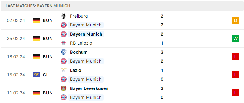 Tưởng chừng như với thắng lợi trước RB Leipzig sẽ phần nào giúp Bayern Munich giải tỏa những sức ép và giúp họ trở lại bản ngã. Tuy nhiên, Hùm Xám đã ngay lập tức bị vả vào mặt bằng trận hòa thất vọng trước Freiburg, đối thủ đã từng bị họ hủy diệt đến 3 bàn ở lượt đi. Hiện “gã khổng lồ xứ Bavaria” đã kém Leverkusen đến 10 điểm trong cuộc đua danh hiệu. Cuộc tiếp đón Mainz ở vòng đấu tiếp theo sẽ là cơ hội quá tốt để họ tìm lại sự tự tin.
