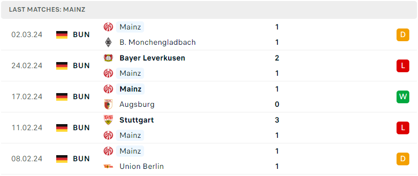 Phong độ của Mainz