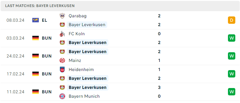 Phong độ của Bayer Leverkusen
