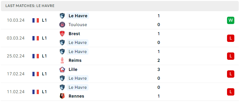 Phong độ của Le Havre