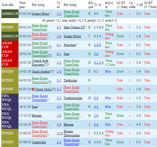 Lịch sử thi đấu của Hong Kong vs Uzbekistan