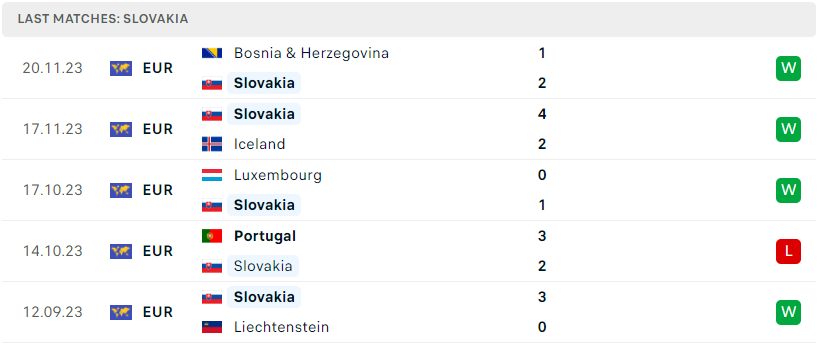 Phong độ của Slovakia