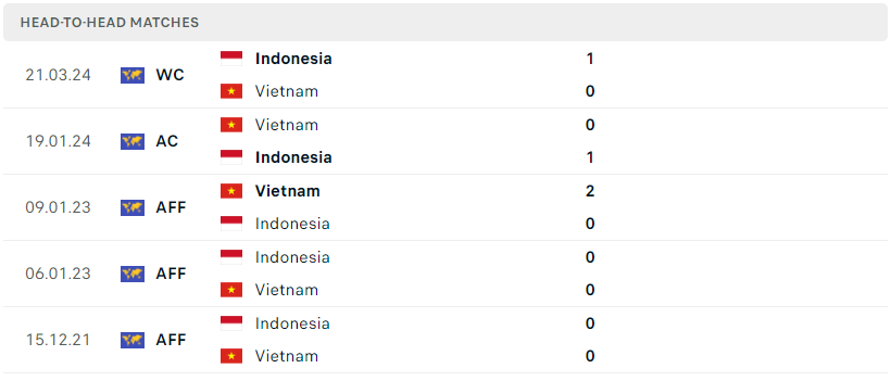 Thành tích đối đầu của Việt Nam vs Indonesia