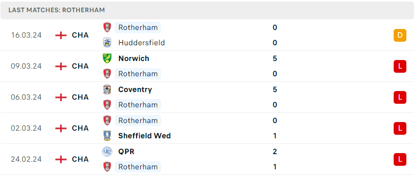 Trong khi đó với Rotherham, tập thể này vẫn đang trình diễn một bộ mặt quá thất vọng ở mùa giải năm nay. Trận hòa trước Huddersfield ở vòng đấu trước thực tế cũng chỉ mới là điểm số đầu tiên mà họ có được trong 10 vòng đấu gần nhất. Đáng ngại hơn, đoàn quân Leam Richardson hiện đã bị nhóm trụ hạng bỏ lại đến 19 và đang có nguy cơ rất lớn phải trở lại League One vào mùa sau. Chuyến làm khách trước Preston sắp tới đây sẽ tiếp tục được dự báo là nhiệm vụ vô cùng chông gai nữa cho họ.