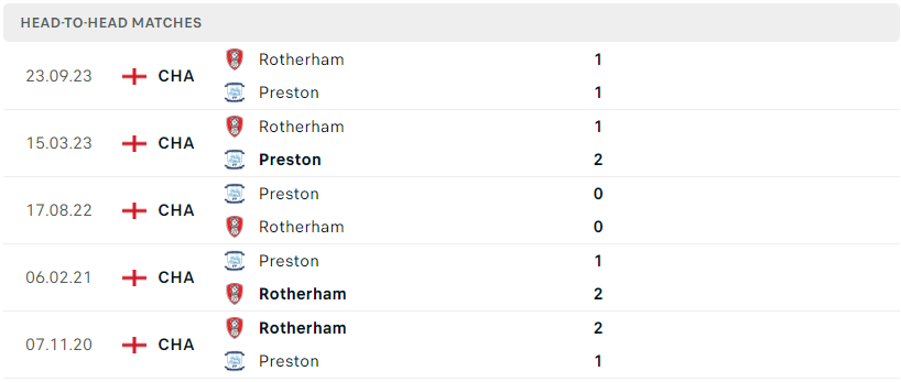 Thành tích đối đầu của Preston vs Rotherham