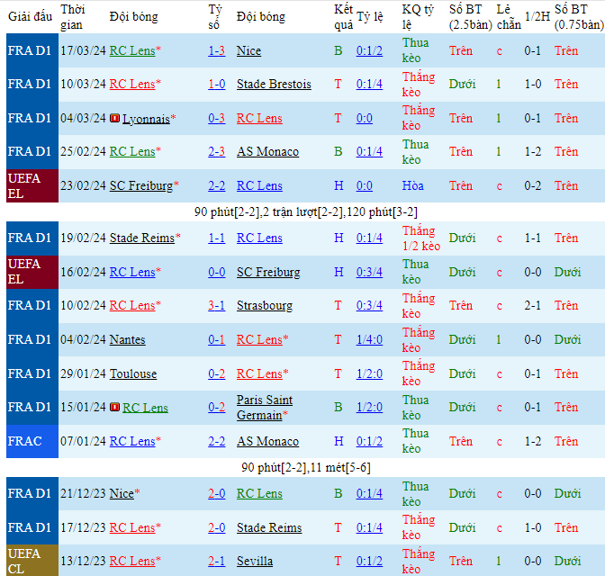 Kèo châu Âu cũng đang là sự ưu thế nhỏ cho đội chủ nhà khi mức ăn của Lille đang là 1.92 trong khi đó con số này của Lens đã là 3.40. Sẽ là một trận đấu với thế trận tương đối giằng co khi cả hai đội sẽ sẵn sàng chơi sòng phẳng với nhau để tìm kiếm kết quả có lợi cho mình. Và với các lợi thế nhất định thì Lille nhiều khả năng vẫn sẽ là cái tên có được niềm vui sau cùng.
