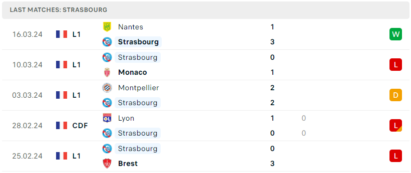 Trước khi bước vào khoảng nghỉ 2 tuần cho FIFA Days tháng 3, Strasbourg cũng đã kịp tìm lại mạch thắng bằng màn hủy diệt Nantes với tỉ số 3-1. Đây rõ ràng là bước đệm cần thiết để đoàn quân Patrick Vieira có thể sớm vực dậy tinh thần và tìm lại phong độ ổn định ở đầu mùa. Dù vậy, nhưng thử thách tiếp theo vào cuối tuần sẽ không hề dễ khi đối thủ là Rennes đang cực kỳ ổn định.