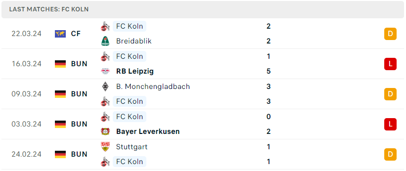 Phong độ của FC Koln