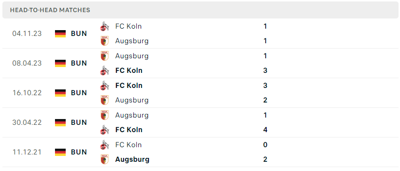 Thành tích đối đầu của Augsburg vs FC Koln