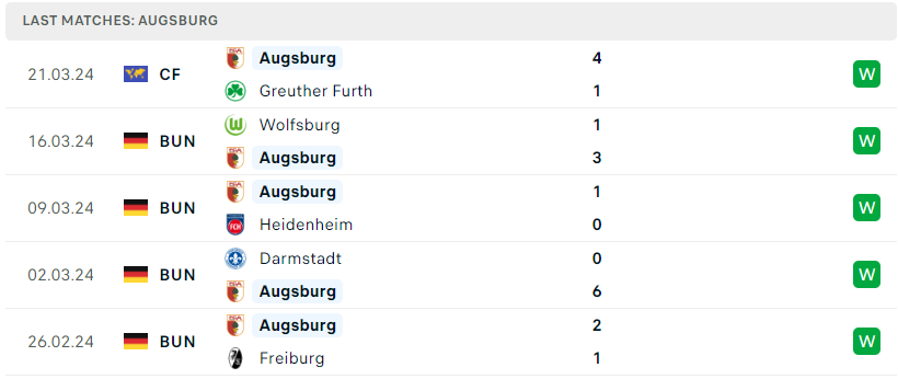 Phong độ của Augsburg