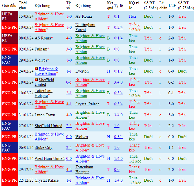 -Phong độ Brighton