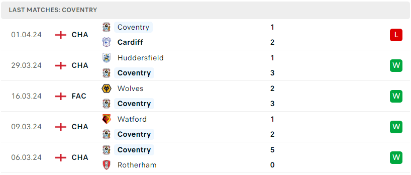 Phong độ đội bóng Southampton vs Coventry