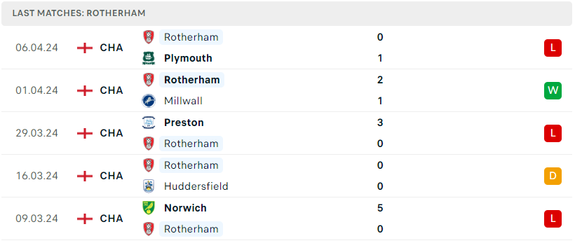 Bên kia chuyến tuyến, tưởng chừng như với thắng lợi đầy thuyết phục trước Millwall thì Rotherham sẽ phần nào tìm lại được sự tự tin, thế nhưng mọi thứ lại không được suôn sẻ như vậy khi đoàn quân Richardson tiếp tục gây thất vọng bằng trận thua bạc nhược trước Plymouth. Hiện The Millers chỉ mới mang về 23 điểm và còn cách nhóm an toàn lên đến 19 điểm. Thời gian không còn nhiều và nếu tiếp tục để thua trong trận đấu tới thì một suất trở lại League One gần như là điều chắc cú.