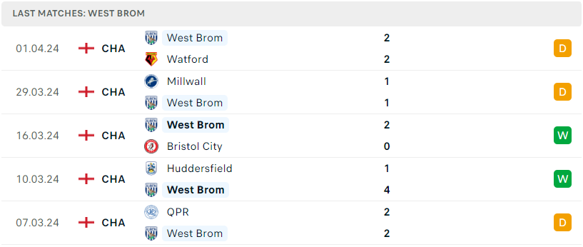Phong độ của West Brom