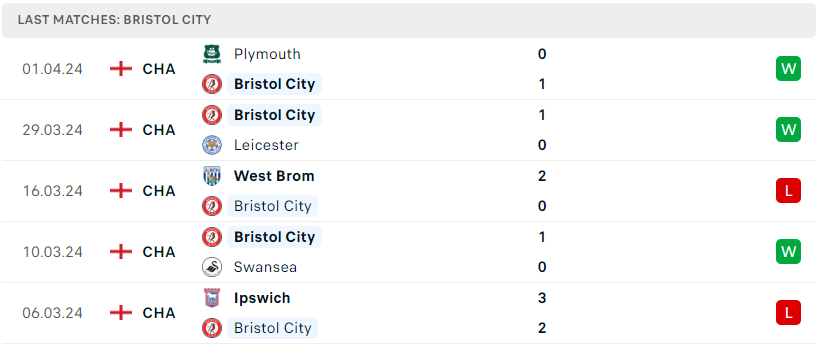 Phong độ của Bristol City